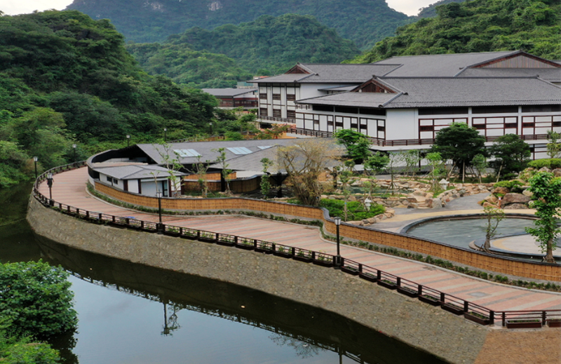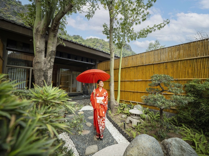 Khu nghỉ dưỡng khoáng nóng cao cấp này có quy mô hơn 700ha, chia thành 3 phân khu riêng biệt và chính thức đi vào hoạt động từ tháng 5/2020. Toàn bộ không gian ở đây được thiết kế theo phong cách truyền thống Nhật Bản, với những ngôi nhà gỗ mái ngói phẳng nằm xen kẽ giữa khu vườn xanh mát, gợi nhớ hình ảnh làng quê yên bình dưới tán hoa anh đào. Bao quanh là núi non hùng vĩ và rừng cây rợp bóng, cùng dòng suối khoáng nóng chảy róc rách suốt bốn mùa, tạo nên khung cảnh thơ mộng và lãng mạn như một góc Nhật Bản thu nhỏ giữa lòng Quảng Ninh.